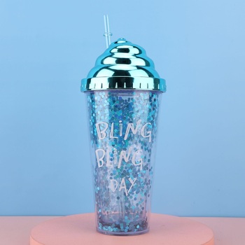 Venta al por mayor de vasos de plástico de doble capa personalizados con pajitas para promociones