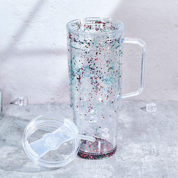 Nuevo estilo 40oz doble pared reutilizable plástico transparente cerveza nieve globo vaso tapón sello manija tapa DIY aceite lentejuelas vidrio transparente