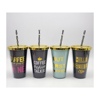 Wholesale Custom Double Layer Plastic Cups with Straws for Promotions