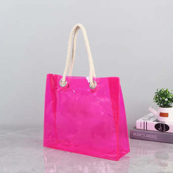 Bolsa de PVC resistente al agua con asa de cuerda de algodón adecuada para fiesta de colores vibrantes personalizada